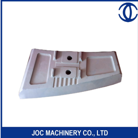Piezas de repuesto para todo tipo de máquina de trituradores (placa de mandíbula móvil o estacionaria, trituradores de cono, trituradoras de martillo, trituradoras de impacto, placa de mejilla, cuña, martillo de trituración, placa de rejilla, cortador lateral, etc.) pueden ser suministrados por JOC. Estas piezas de repuesto con buena calidad basadas en material con composición química estable y proceso de tratamiento térmico resonable para garantizar una buena resistencia al desgaste y alta resistencia.